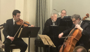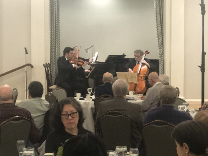 TEC celebrated its history by playing a variety of trios by masters of classical music at the Fortnightly Club in Chicago. The Trio was directed by founder and artistic director, Gerald Rizzer. Gerald was accompanied by Andrew Snow, Cello and Jamie Gorgojo, violin.